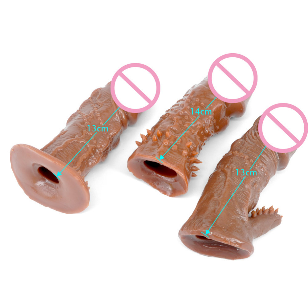 Realistic Penis Sleeve Extender Reuseable Increase Cock Enlargement Extension Delay Ejaculation Condom Sex Toys for Men