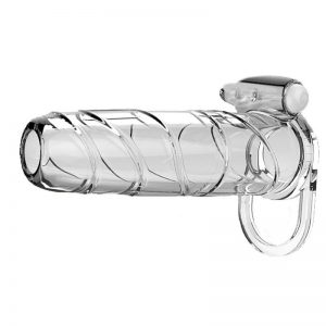 Place your accessory sleeve into the cylinder and then insert your erect penis through the ring and into the cylinder. The cylinder should remain firmly pressed against the base of your penis/pubic area to keep air from escaping.