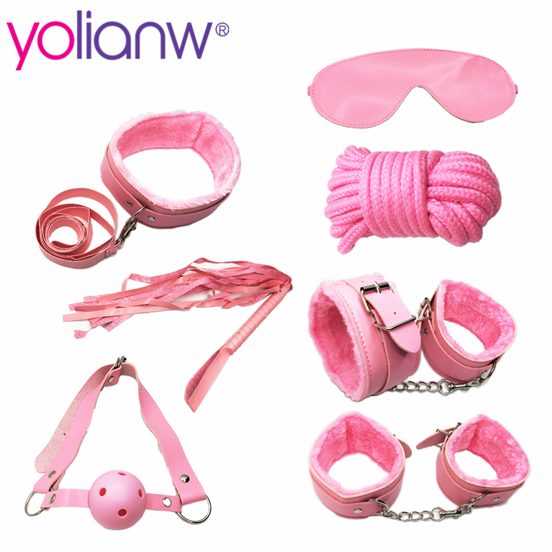 yolianw Sexy 7 Pcs/Set Kit Fetish Sex Bondage Sex Toys for Couples, Nipple Clamps Foot Handcuff Ball Gag Whip Collar Eye mask